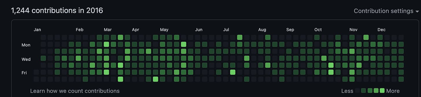 My Github activity when I was preparing for my Google interview in early 2017