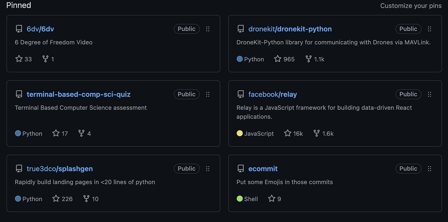 After you get 6 pinned repositories on your profile, you want to get stars on your projects. Having stars on your projects tells the Tech Recruiter that you are building things that other people actually find value in. Try to get to at least 10 stars per project.
